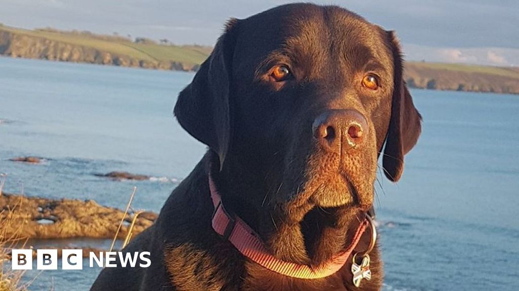 Owner Sean Clancy became worried for chocolate Labrador LJ when he spotted string in the dog's mouth during the outing on Carlyon Bay Beach in Cornwall.