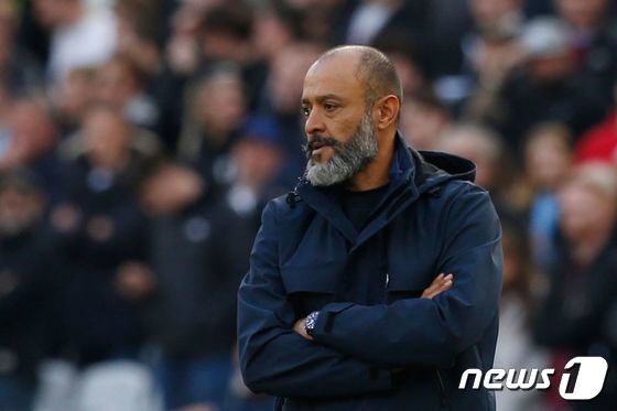 | 누누 에스피리투 산투 토트넘 감독이 24일(현지시간) 영국 런던 스타디움에서 열린 프리미어리그(EPL) 웨스트햄과의 경기를 지켜보고 있다. © AFP=뉴스1 |